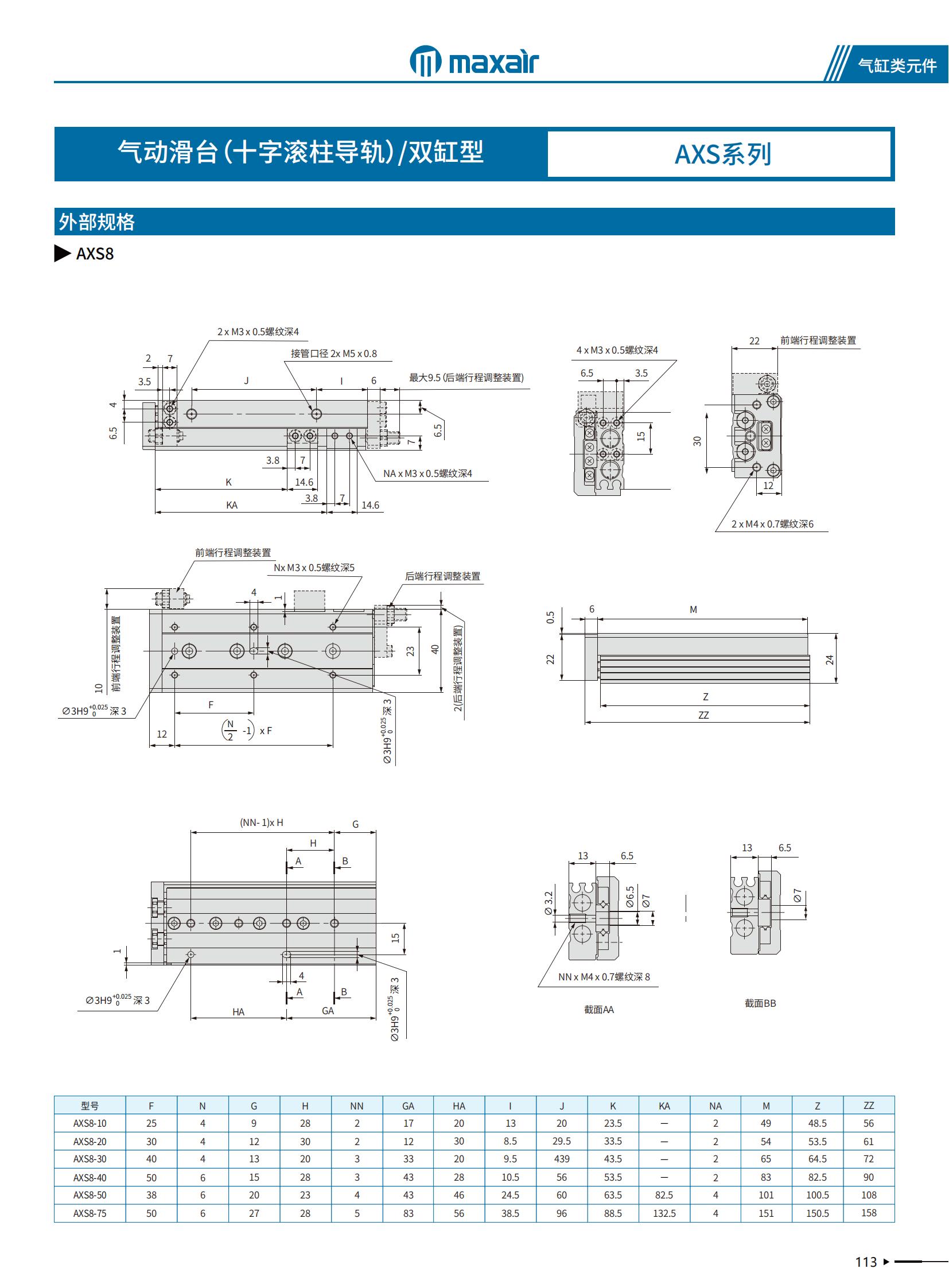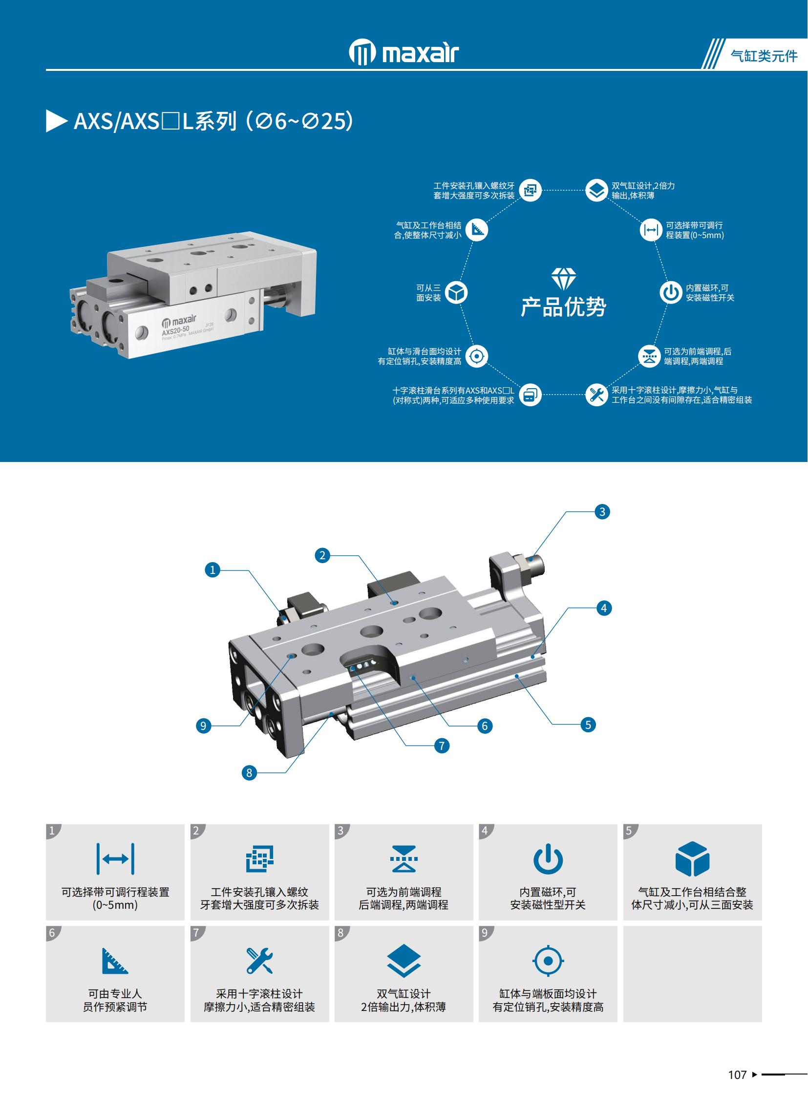 十字滾柱滑臺系列有AXS和AXS口L兩種對稱型式可適應多種使用要求